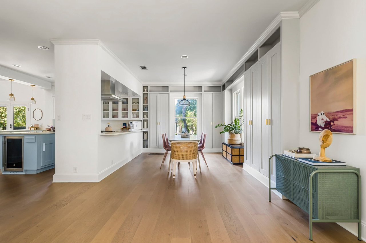 With its original façade and manicured landscaping, the home preserves its historic character, while inside, every inch has been redefined for modern function and everyday elegance. Vaulted ceilings, curated finishes, and a free-flowing open layout set the stage for both relaxed living and grand entertaining.