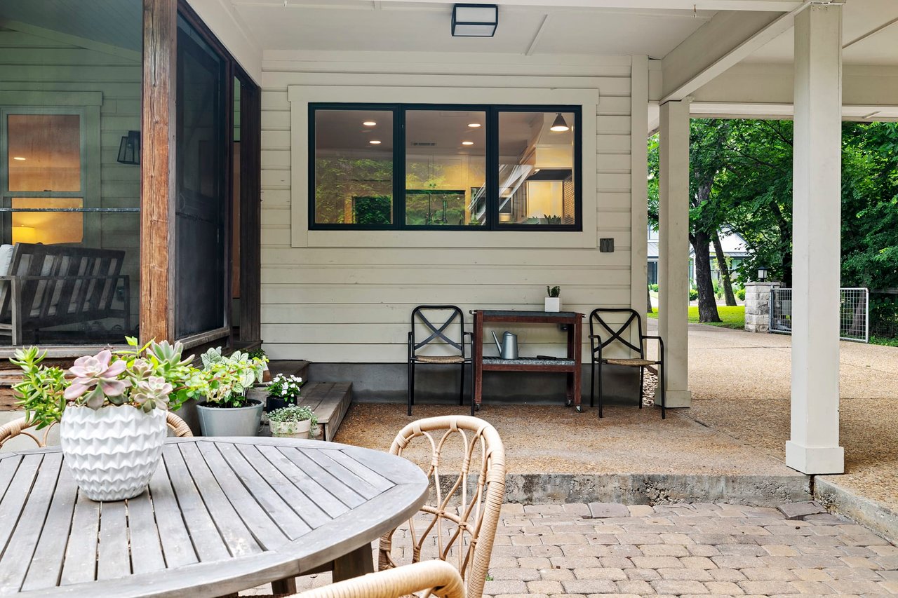 The spacious kitchen is a chef's dream, boasting Thermador stainless steel appliances, custom cabinetry from Austin Woodworks, and marble countertops. The primary suite is a serene retreat with a luxurious Victoria + Albert freestanding tub and custom finishes. The expansive, private backyard is a park-like oasis with lush landscaping and an Ipe wood screened-in porch, perfect for relaxing or entertaining. Additional highlights include a carport, pocket doors, and a complete remodel that took place in 2014.