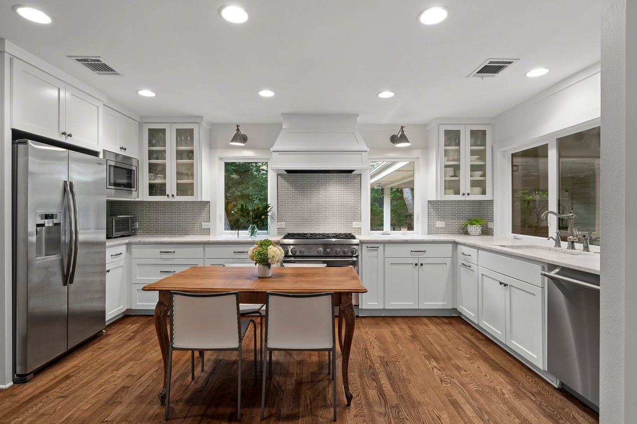 Welcome to 4903 Valley Oak Dr, a charming mid-century home nestled in the highly sought-after Highland Park West neighborhood of Austin, Texas. This beautifully remodeled single-level residence offers 3 bedrooms, 3 bathrooms, and 2,275 square feet of living space on a sprawling .44-acre lot. Built in 1951, this home combines classic elegance with modern updates, featuring original hardwood floors, marble tile, and crown molding throughout.
